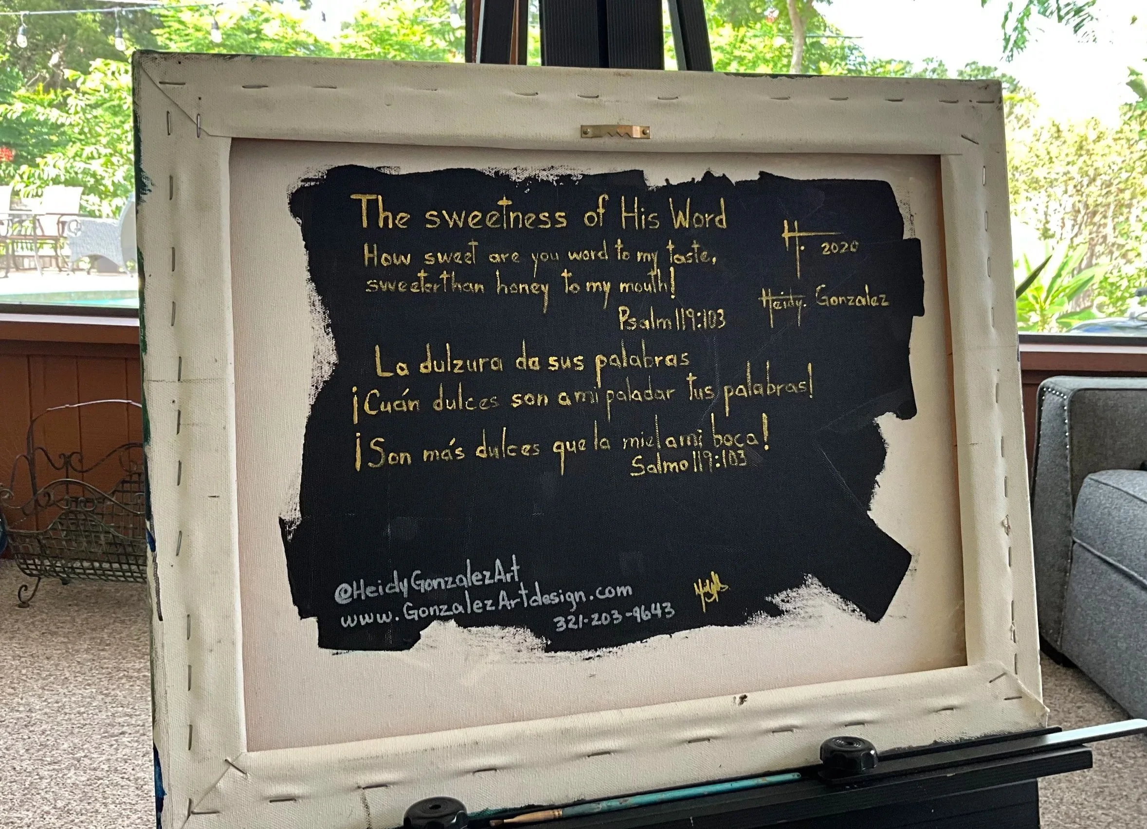 Just as Psalm 119:103 says, “How sweet are your words to my taste, sweeter than honey to my mouth!” this piece is a reminder that even in the hardest times, His Word carries a sweetness that restores and comforts the soul.