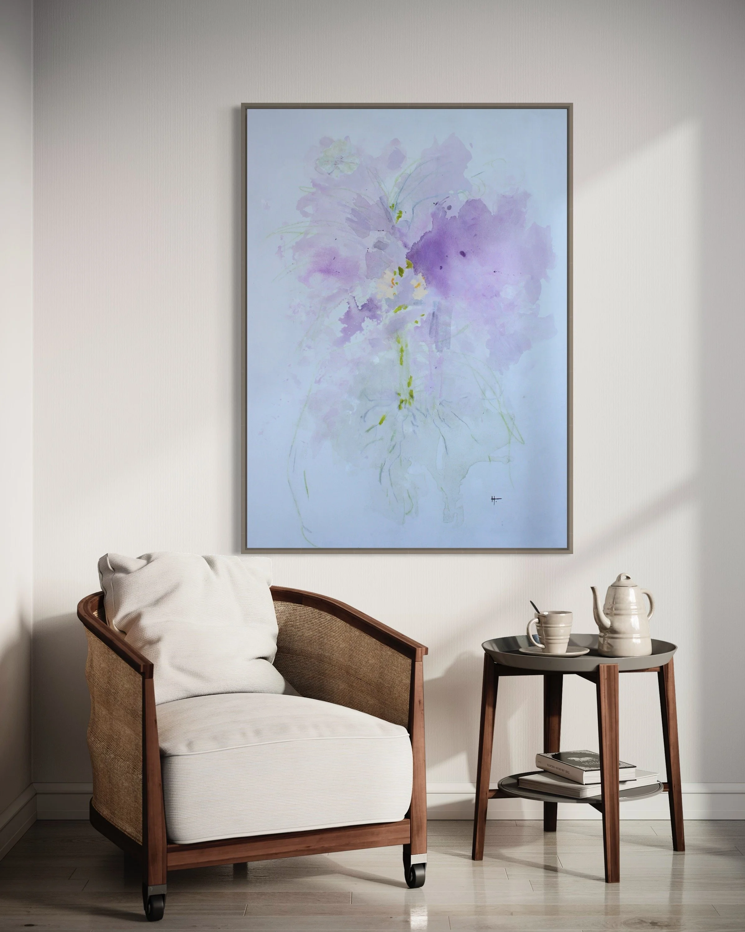 The work reflects themes of growth, and quiet beauty, inviting the viewer to contemplate the spiritual and emotional depth that flowers can symbolize.