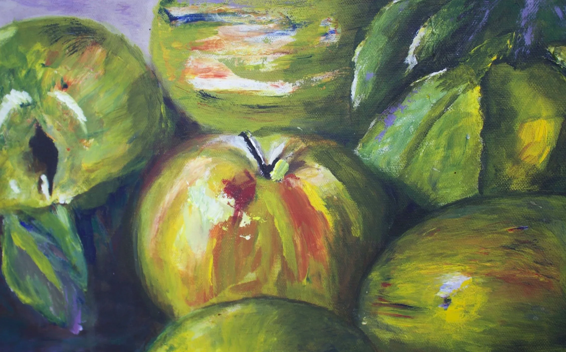 During the same season when I painted my red apples, I created this impressionist work of green apples as a continuation of the comfort I found in Psalm 91.