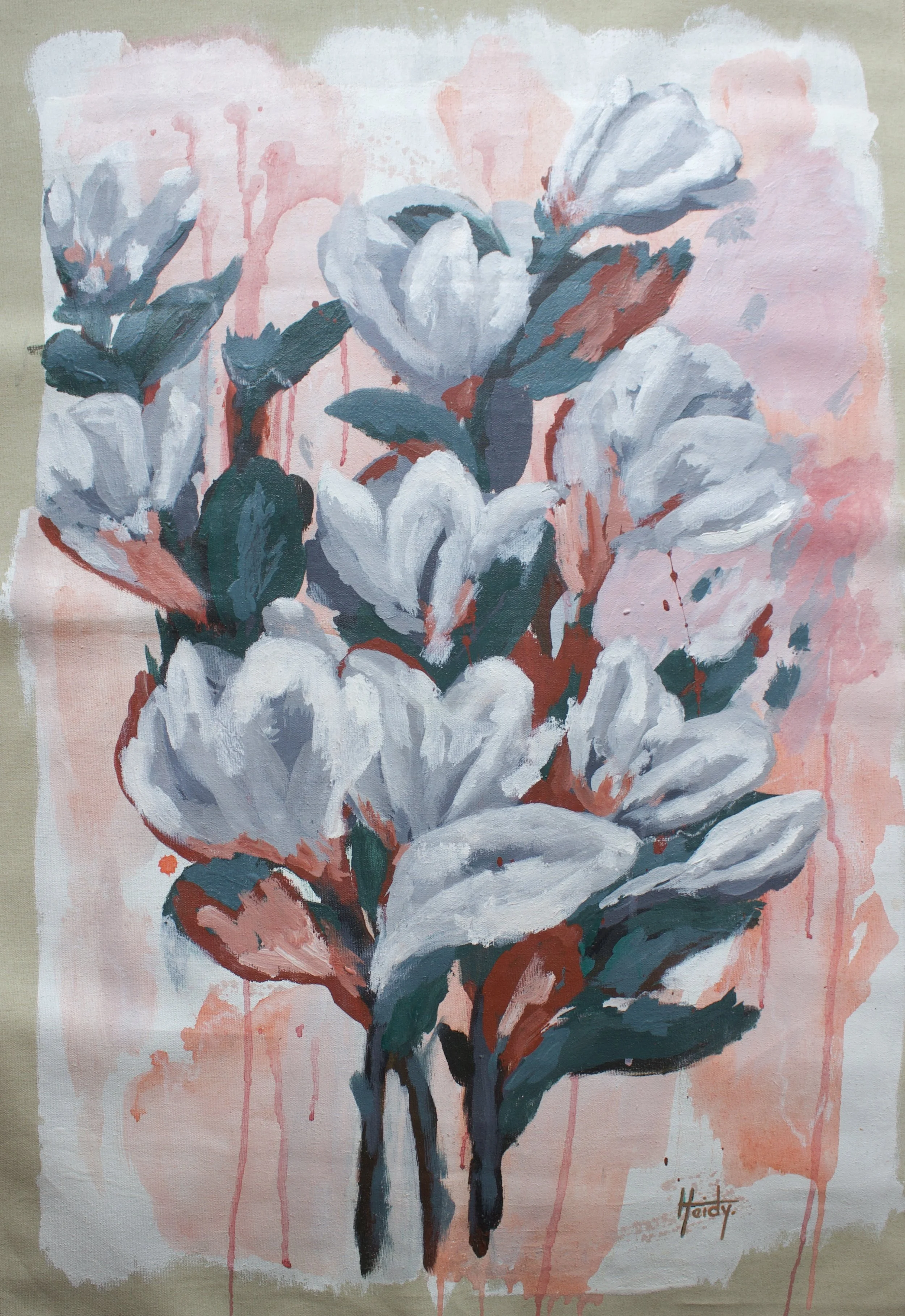 Magnolias captures the quiet strength and elegance of nature through a blend of impressionist and abstract expression. The composition reflects a deep love of nature, inviting viewers to contemplate that He makes all things beautiful in its time.