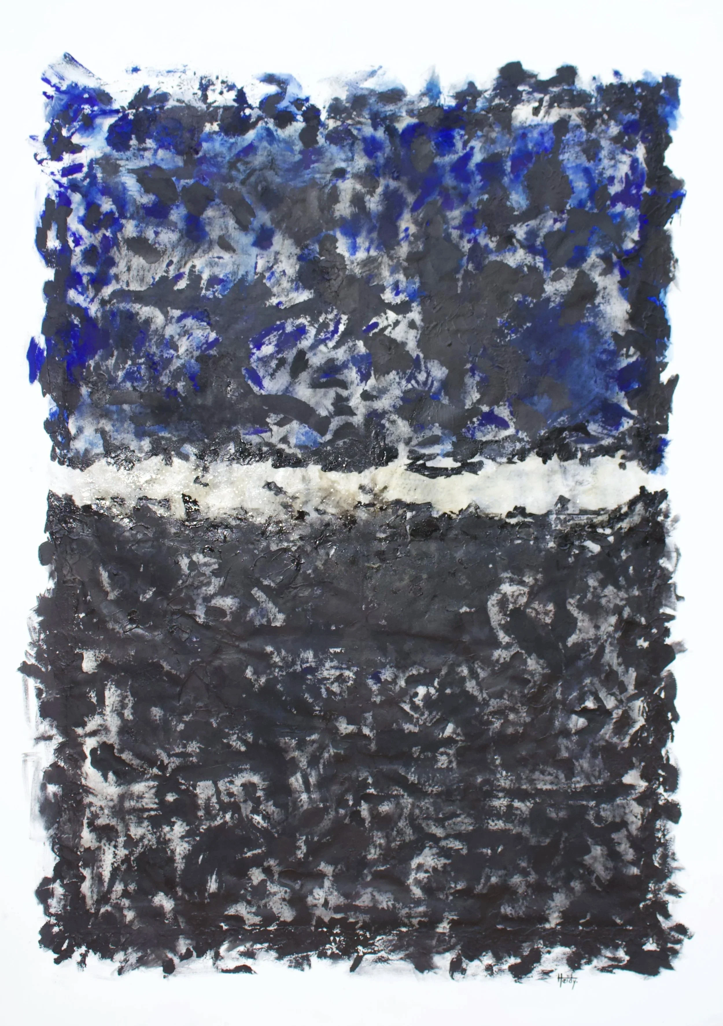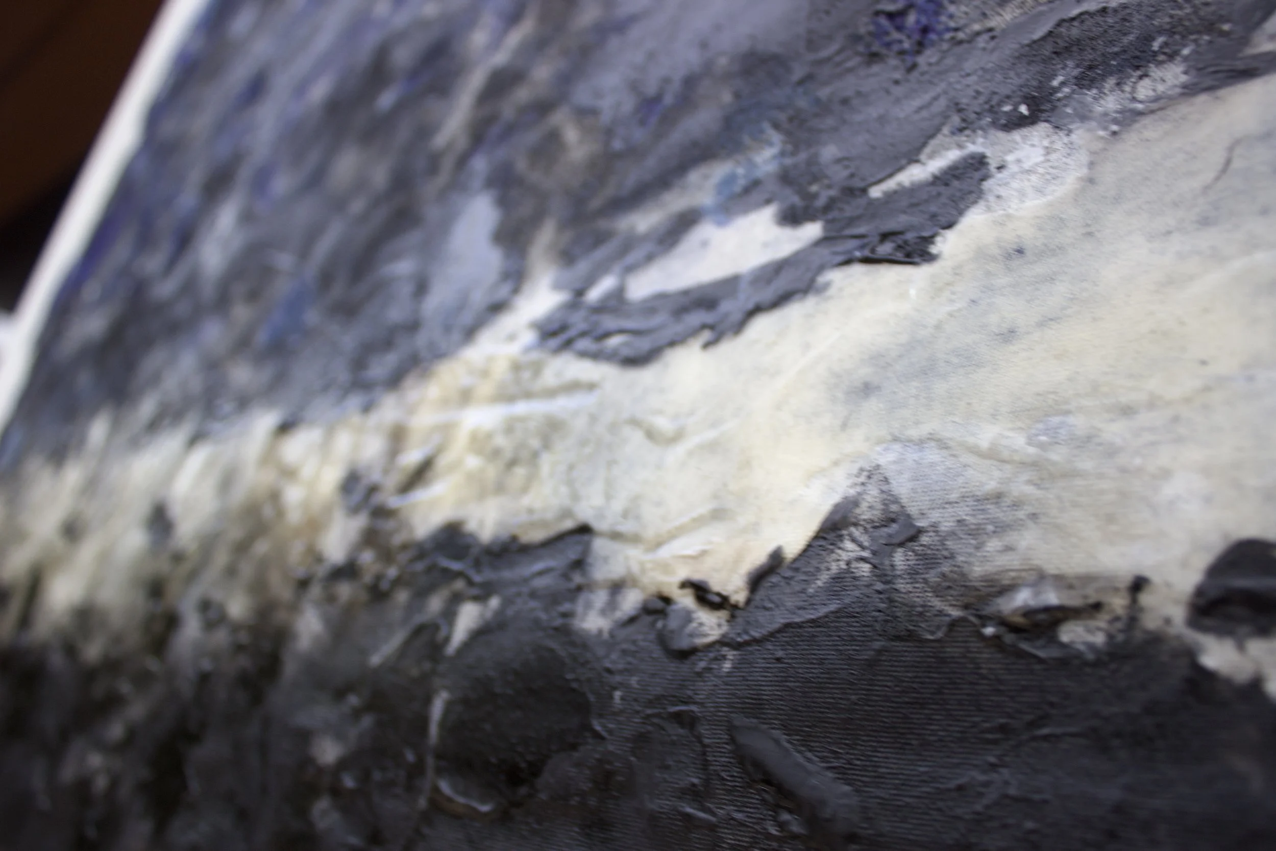 This abstract Expressionist work draws inspiration from the opening verses of Genesis 1:1–2, where creation begins in formless darkness and divine presence hovers over the surface of the waters. Layers of paint and texture suggest chaos, echoing the mystery of beginnings. At the center, a gel surface simulates clear water, embodying the primordial deep and the Spirit’s movement across it. The piece invites contemplation and meditation.